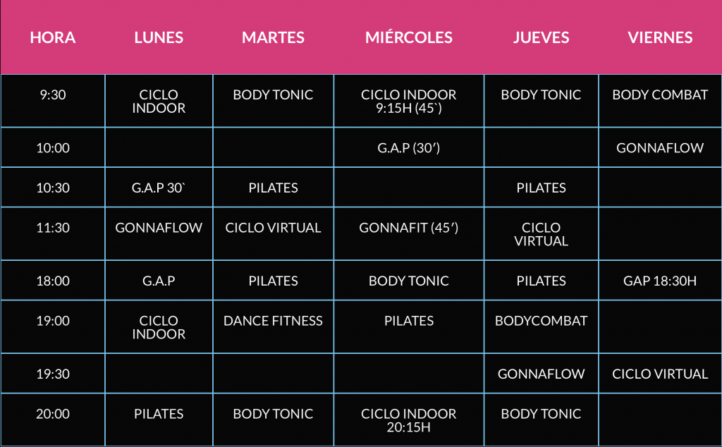 HORA LUNES MARTES MIÉRCOLES JUEVES VIERNES